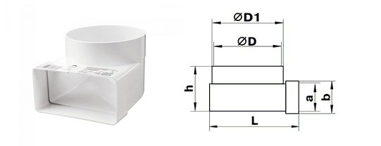 - Плоские каналы присоединяются напрямую, а круглые через соединитель соответствующего диаметра.