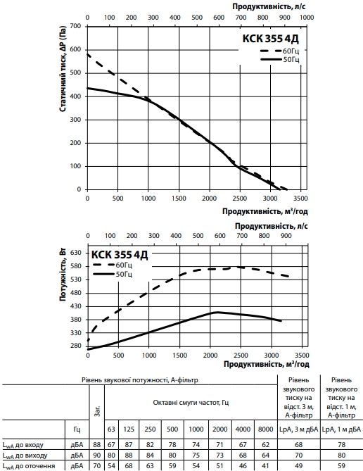 Аэродинамические характеристики Канальный шумоизолированный вентилятор ВЕНТС КСК 355 4Д