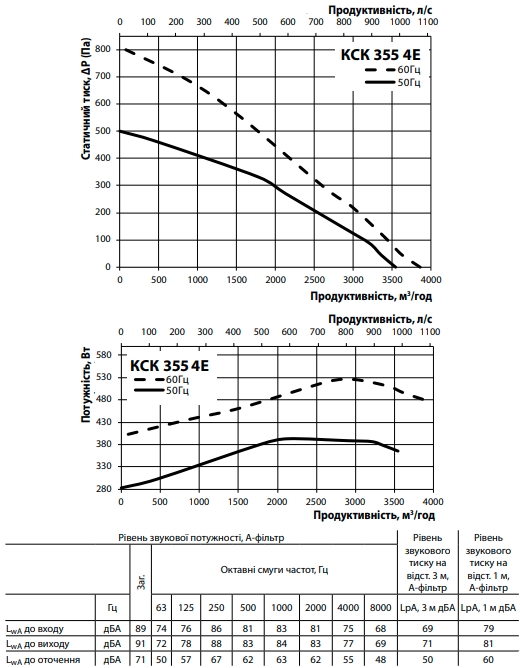Аэродинамические характеристики Канальный шумоизолированный вентилятор ВЕНТС КСК 355 4Е