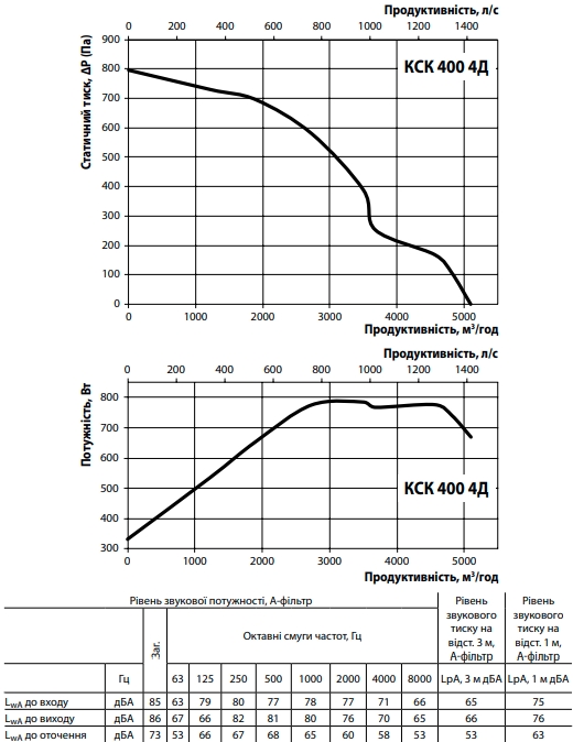 Аэродинамические характеристики Канальный шумоизолированный вентилятор ВЕНТС КСК 400 4Д