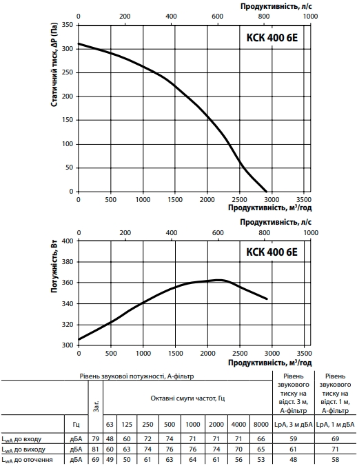 Аэродинамические характеристики Канальный шумоизолированный вентилятор ВЕНТС КСК 400 6Е