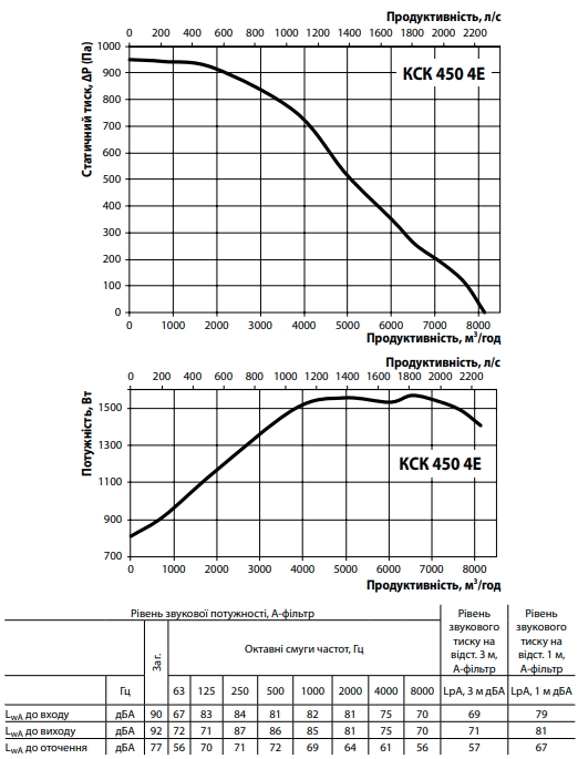 Аэродинамические характеристики Канальный шумоизолированный вентилятор ВЕНТС КСК 450 4Е