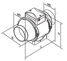 - Вентилятор предназначен для канального монтажа в воздуховод соответствующего диаметра в любой точке вентиляционной системы и под любым углом