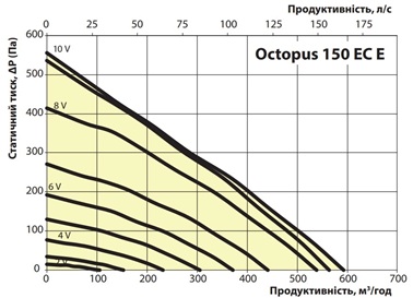 Аэродинамические характеристики Канальный вентилятор Ventika Octopus 150 ЕС E