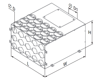 - Воздухораспределительные коробки изнутри облицованы шумоизоляционным слоем в 20 мм, что минимизирует шум в месте размещения.