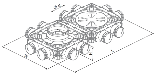 - Корпус коллекторов выполнен из высококачественного, прочного, легкого и безопасного полипропилена (PP) с термопластическим эластомером (SEBS), что обеспечивает надежную и долговечную работу системы.