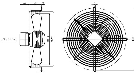 Сетка и крыльчатка вентилятора изготовлены из стали, покрытой термо-реактивным порошковым покрытием.
