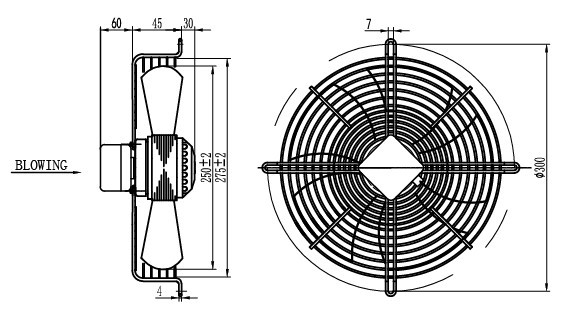 Сетка и крыльчатка вентилятора изготовлены из стали, покрытой термо-реактивным порошковым покрытием.
