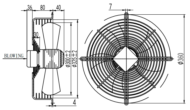 Габаритные размеры Осевой вентилятор MAER 4E-300-B