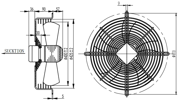 Габаритные размеры Осевой вентилятор MAER 4E-400-S