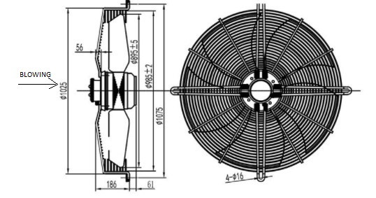 Сетка и крыльчатка вентилятора изготовлены из стали, покрытой термо-реактивным порошковым покрытием.