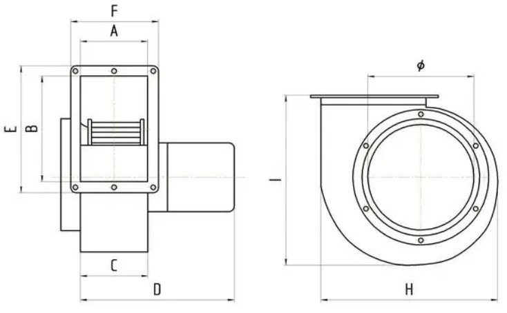 Габаритные размеры Вентилятор радиальный Турбовент НЖВ 150