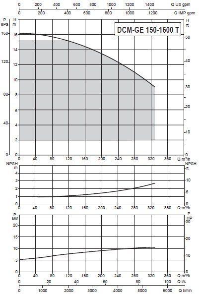 Загальний гідравлічний корпусDCM-GE 150-1600 /A /BAQE /11 T IE2 MCE110 /C, А також опора для двигуна насоса робиться з високоміцного чавуну, робоче колесо з технополімера, а подає ротор з нержавіючої сталі. Для більшої міцності і захисту передбачено два види ущільнення: ЕPDM ущільнення і торцеве з графіту / кераміки.