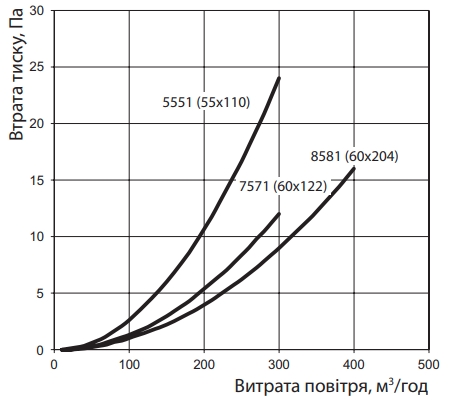 Аеродинамічні характеристики З'єднувач каналів ВЕНТС 55х110